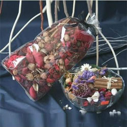 Potpourri is a mixture of dried, naturally fragrant plant material, used to provide a gentle natural scent in houses. It is usually placed in a decorative wooden or glass bowl, or tied in small sachet made from sheer fabric. The dimensions and the colors can be mixed according to the client's needs and specifications.